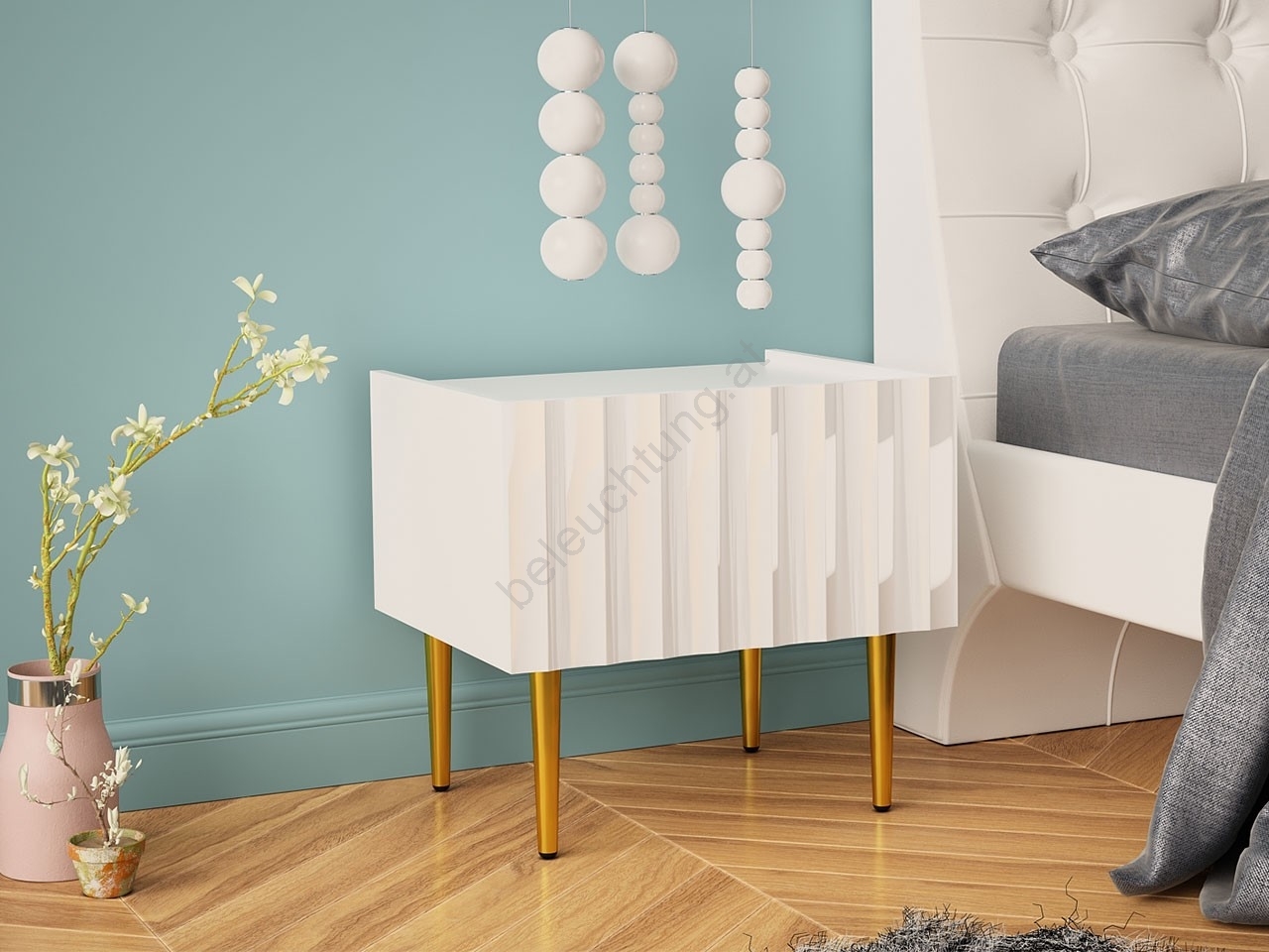 Nachttisch ARCOS 46x50 cm weiß/golden