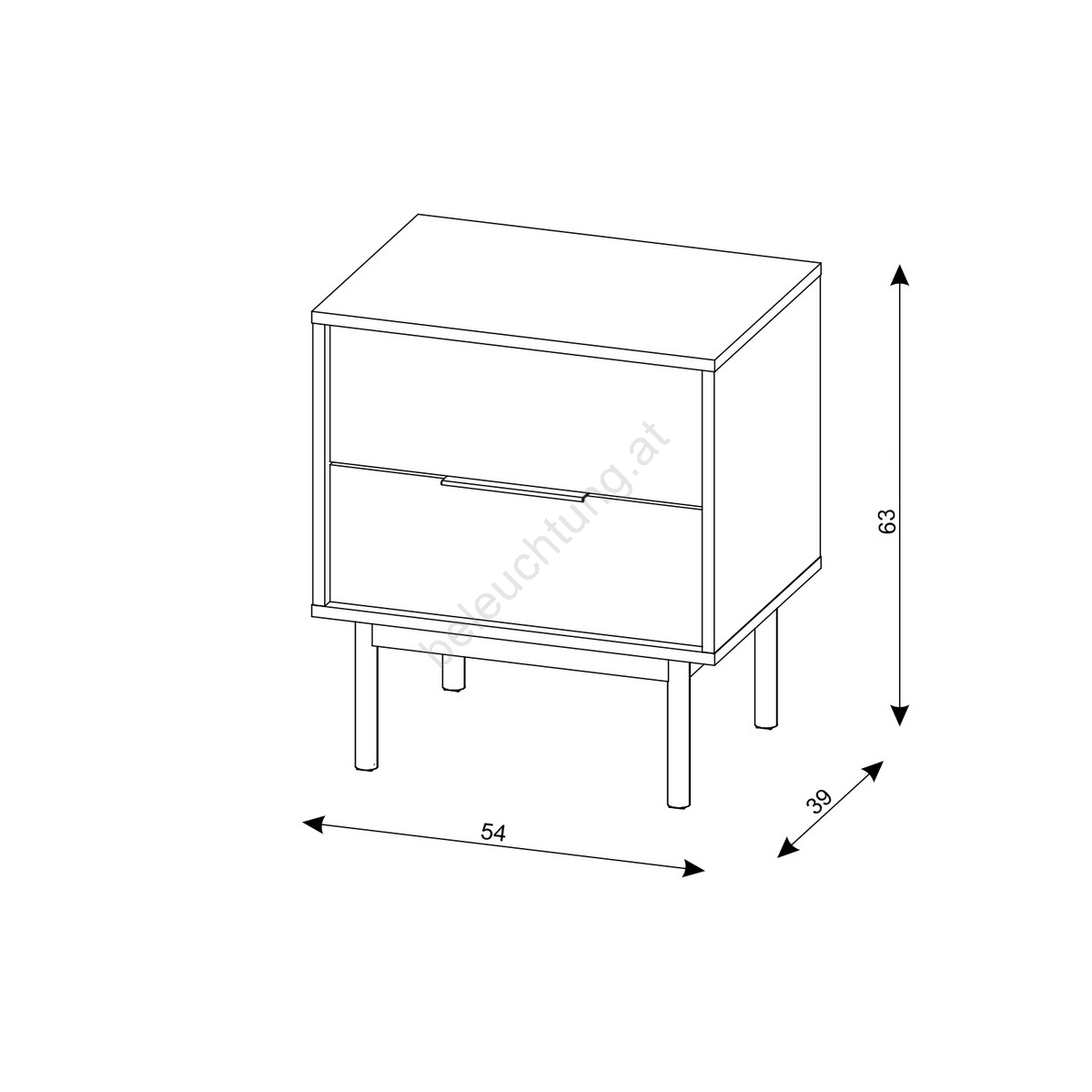 • Er verfügt über zwei Schubladen: die untere mit Griff und die obere grifflose Schublade für ein minimalistisches, klares Erscheinungsbild.