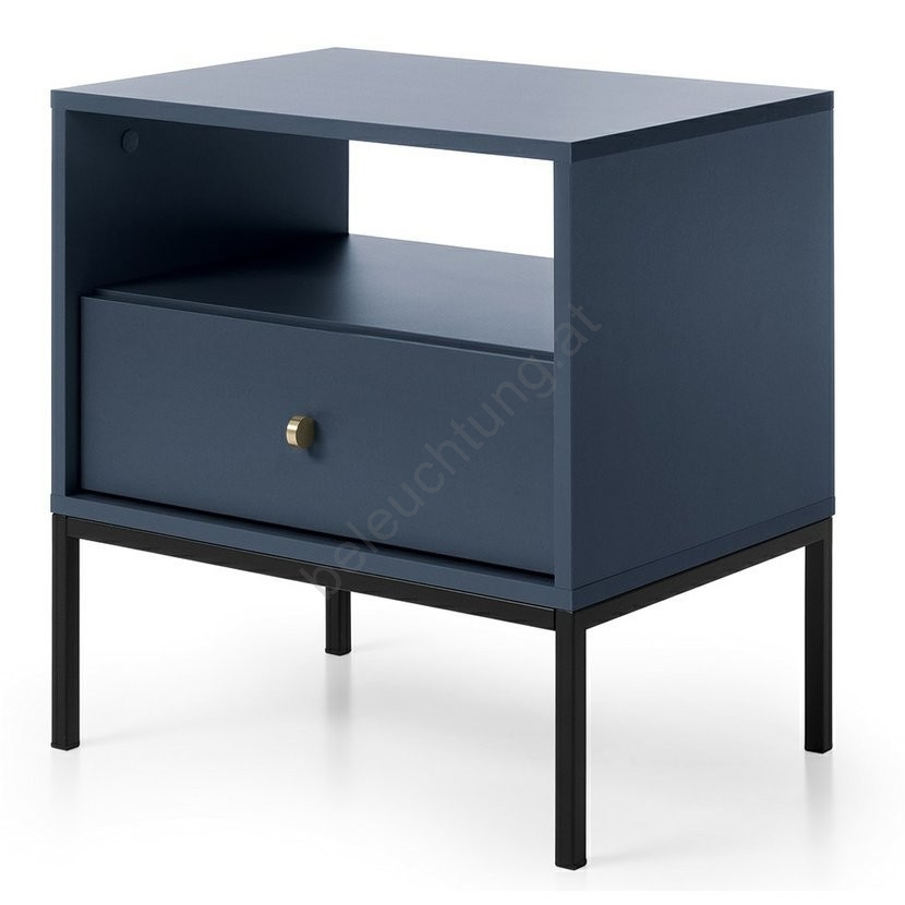 • Nachttisch in dunkelblauer Ausführung.