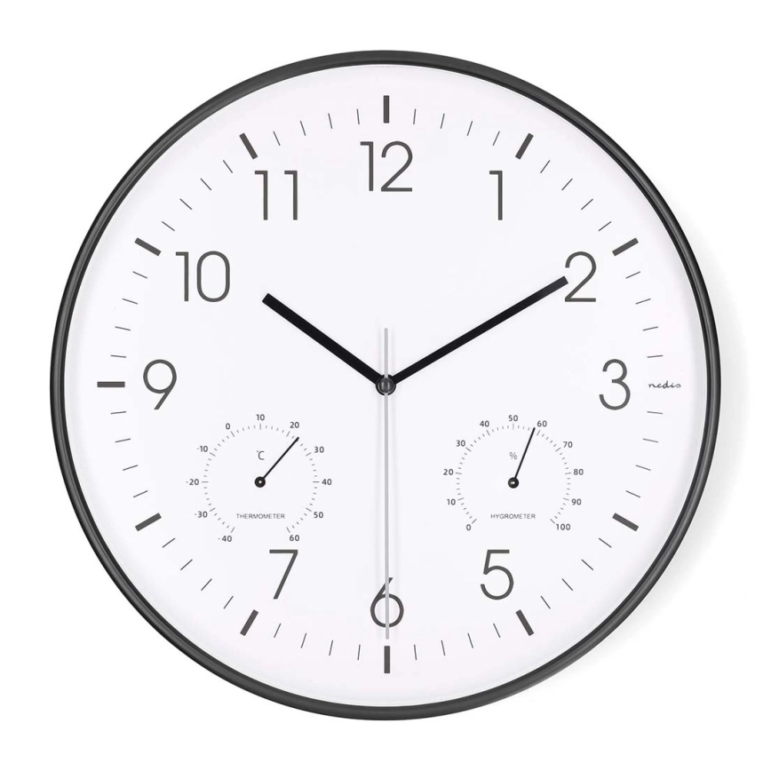 Wanduhr mit Thermometer und Hygrometer, Durchmesser 30,5 cm, 1xAA, schwarz