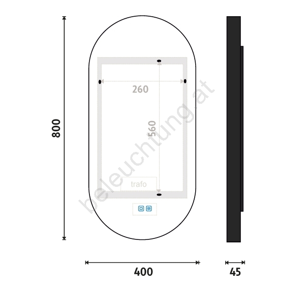 • Der Spiegel verfügt zudem über eine Speicherfunktion, die die letzte Einstellung von Helligkeit und Farbtemperatur speichert.