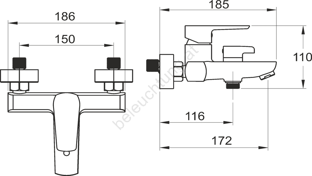 • Dieser Einhebel-Wannenmischer ist eine elegante Ergänzung für jedes Badezimmer.