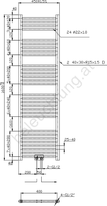 Novaservis - Badheizkörper im Leiter-Design, 648 W/230 V, 160 x 45 cm, schwarz, gerade