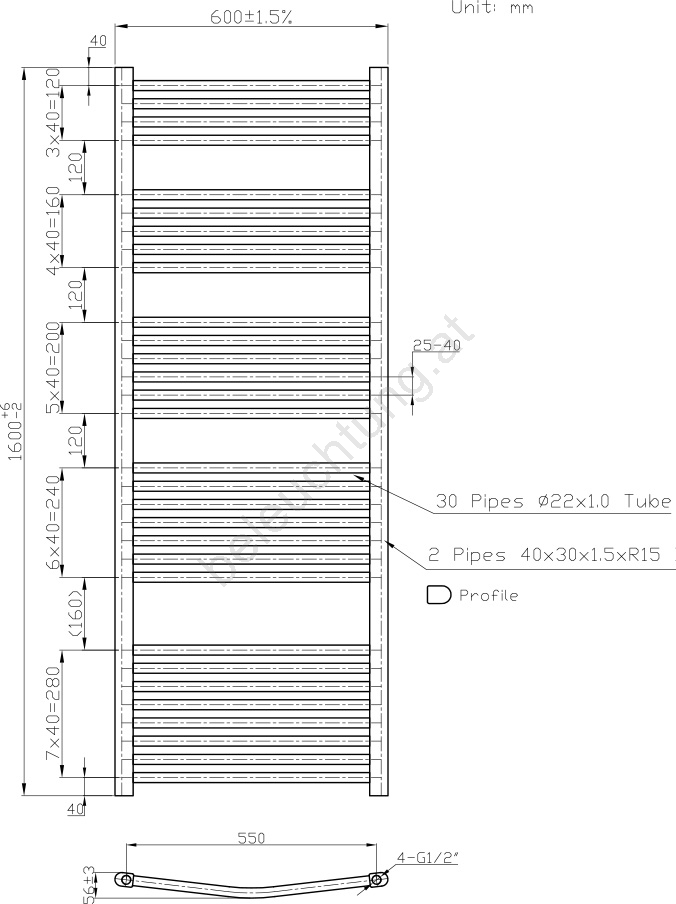 Novaservis - Badheizkörper (Leiterform) 836W/230V 160x60 cm weiß, abgerundet