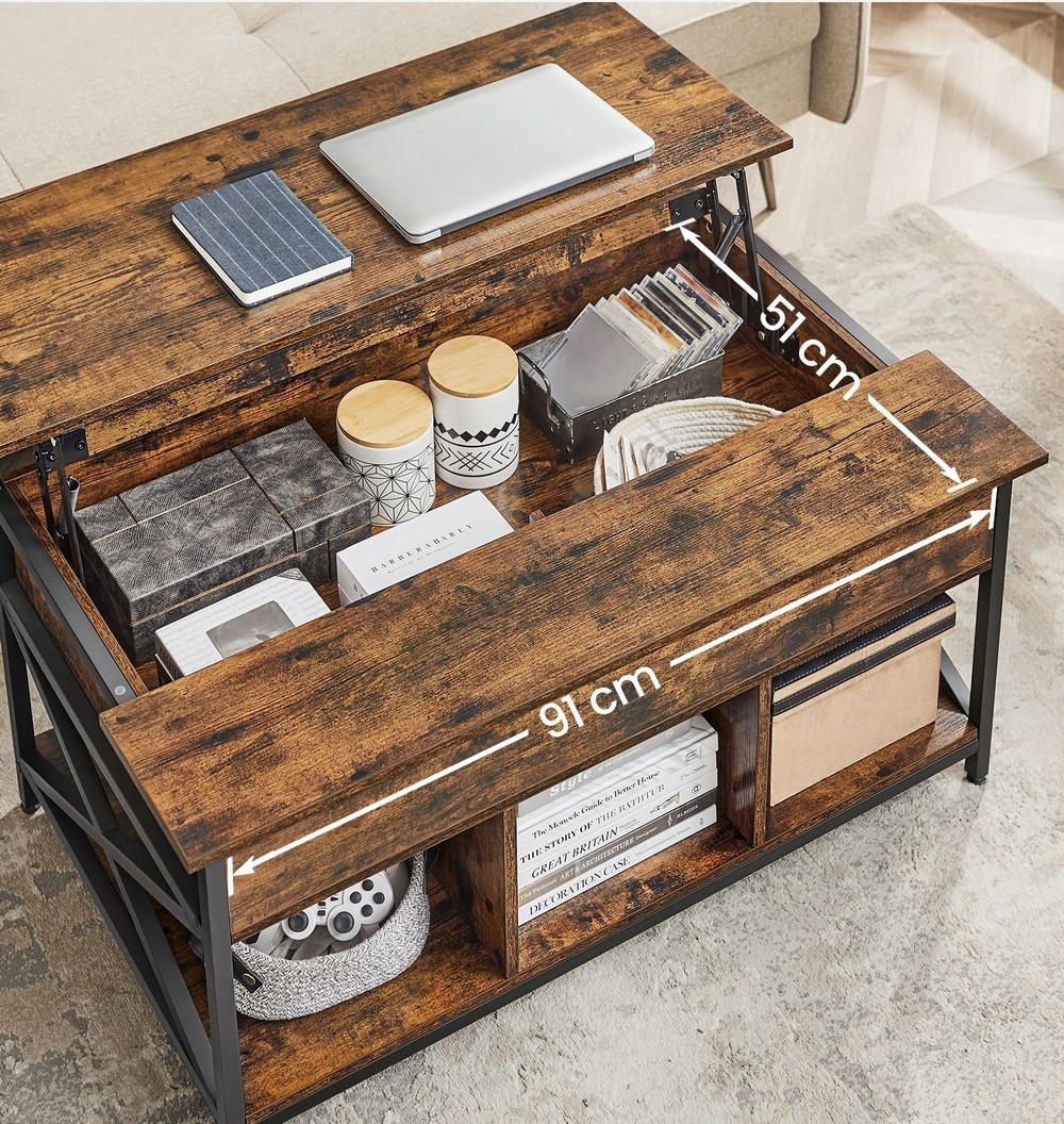 • Couchtisch NYRO mit Hebefunktion – Braun/Schwarz