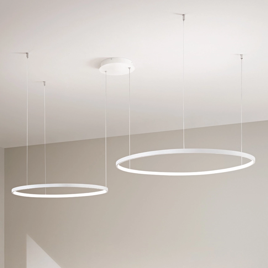 Ondaluce - dimmbare LED-Pendelleuchte SOEL mit Seilaufhängung LED/28W/230V + LED/38W Ø 80/60 cm weiß