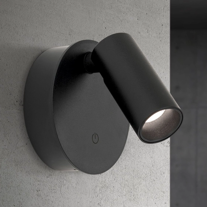 LUXY dimmbarer, wiederaufladbarer Touch-Wand-Spot LED/1W/5V, Akku 2200 mAh, 2700/3000/4000K, schwarz