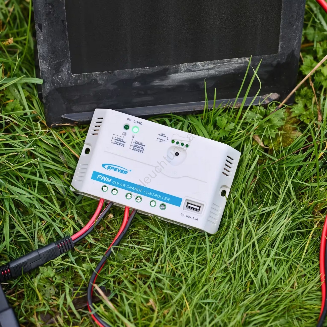 • Dank des 12V/20A-Ladereglers und eines USB-Ausgangs verhindert es Überladung und ermöglicht gleichzeitig das Laden kleiner Geräte.