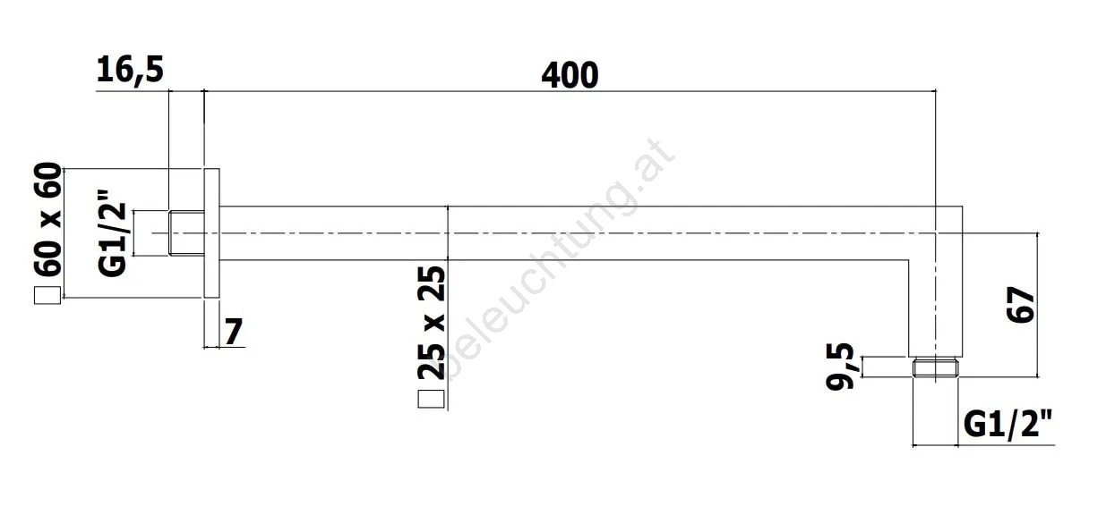 Paffoni - Eckiger Brausearm 40 cm schwarz