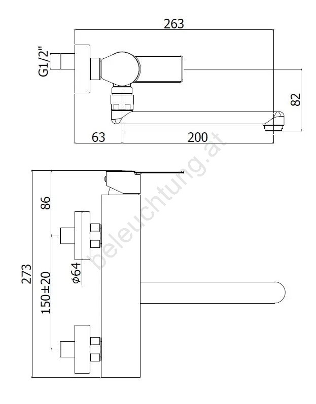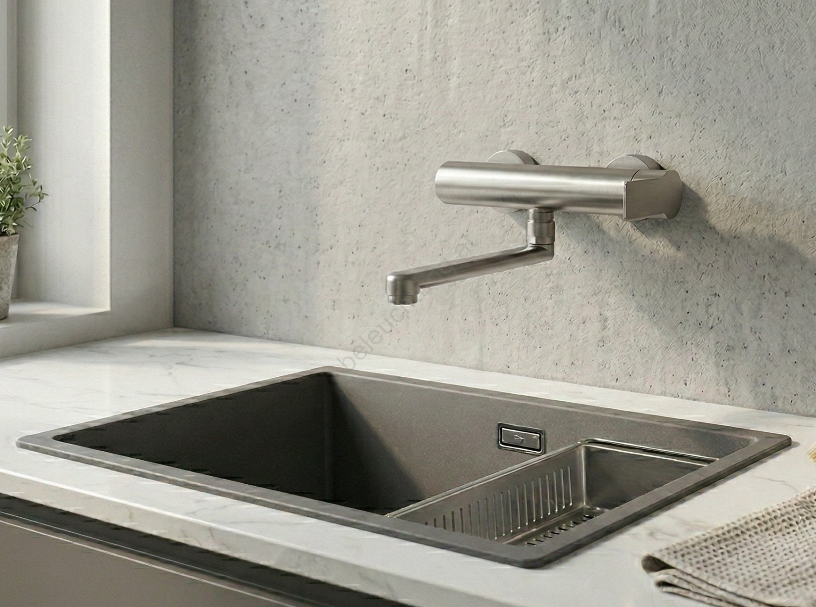 • Wand-Küchenarmatur in Edelstahl-Ausführung.