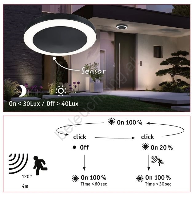 Paulmann 94526 - LED/14W IP44 Outdoor-Deckenleuchte mit Sensor CIRCULA 230V