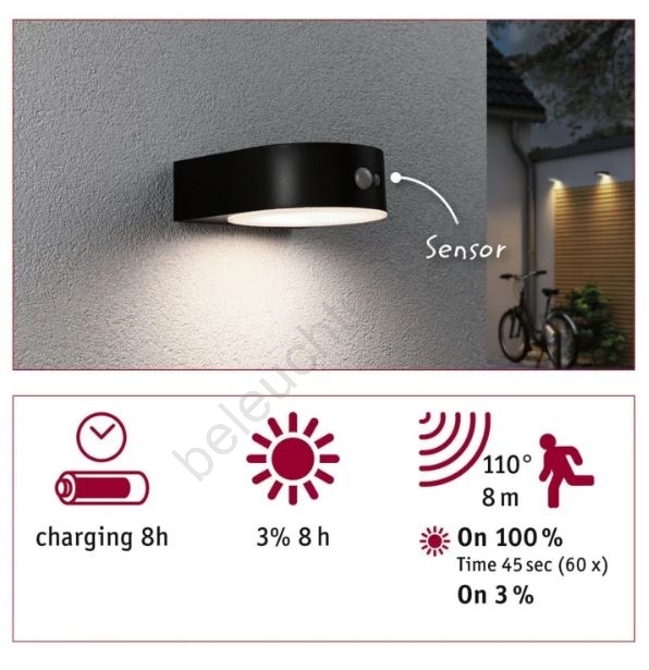 Paulmann 94570 - LED/5,5W IP44 Solar-Wandleuchte mit Sensor EILEEN 3,7V 2000 mAh