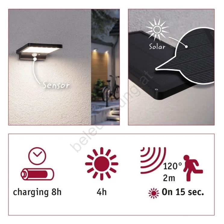 Paulmann 95393 - LED/4W IP44 Dimmbares solarbetriebenes Wandleuchte mit Sensor SOLVEIG 3,7V 2000 mAh