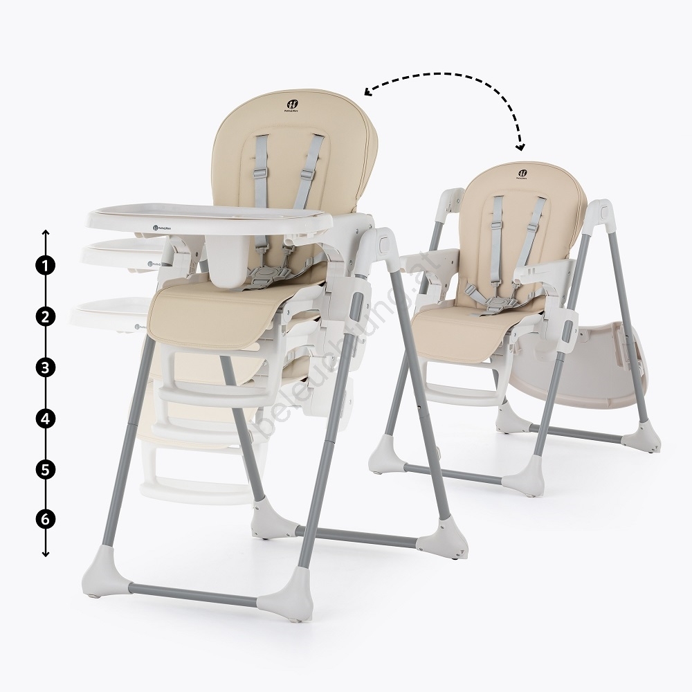 • Der Bezug lässt sich leicht abnehmen und reinigen, verfügt über 5-Punkt-Sicherheitsgurte, eine verstellbare Rückenlehne, eine verstellbare Fußstütze, eine verstellbare Höhe und zwei Tablettpositionen mit spülmaschinengeeigneter Abdeckung.