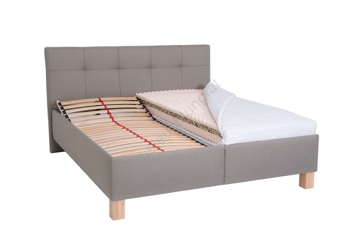• Polsterbett MARIA 160x200 cm mit Matratze und Stauraum, grau