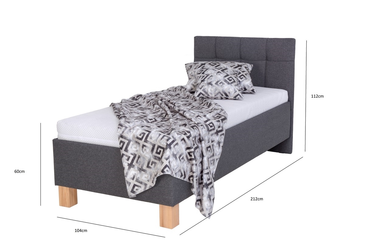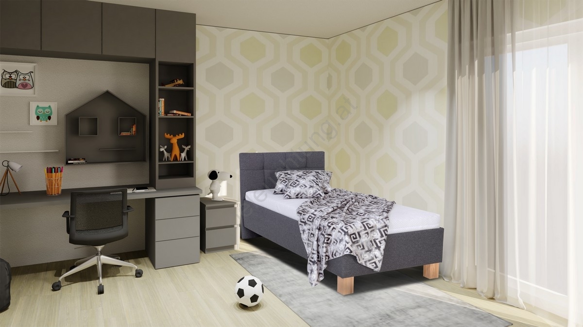 Gepolstertes Bett MARIA ONE 90x200 cm mit Matratze und Stauraum, grau