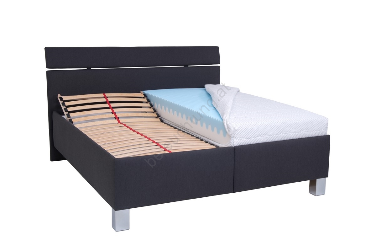 • Massive Holzfüße in Chromoptik sorgen für Stabilität und Festigkeit des Bettes.