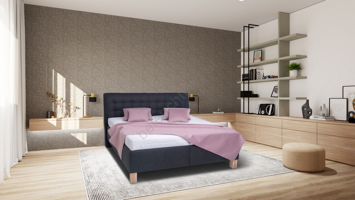 • Das markant gesteppte, elegante Kopfteil verleiht dem Bett ein raffiniertes Erscheinungsbild und erhöht den Komfort beim Anlehnen.