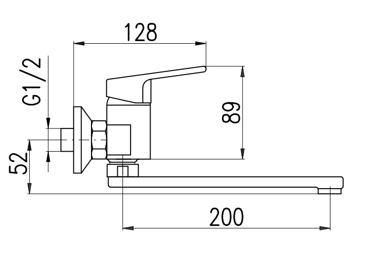 • Wandarmatur für Spüle mit flachem Auslauf 200 mm.