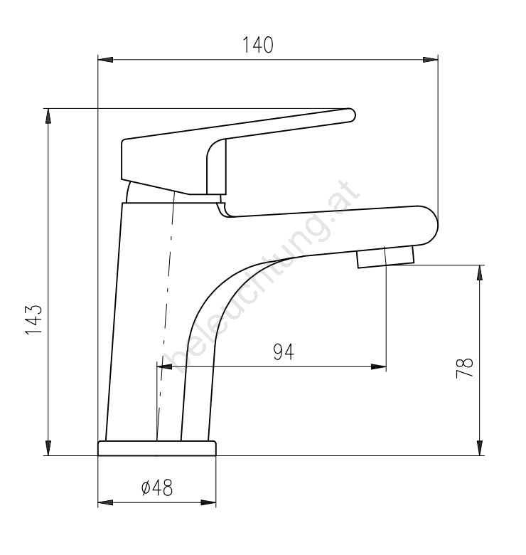 • Stand-Waschtischarmatur ohne Ablaufgarnitur.