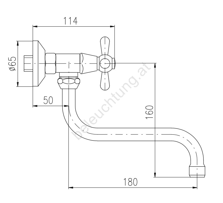 • Wandarmatur für Spüle/Waschbecken mit rundem Auslauf 180 mm.