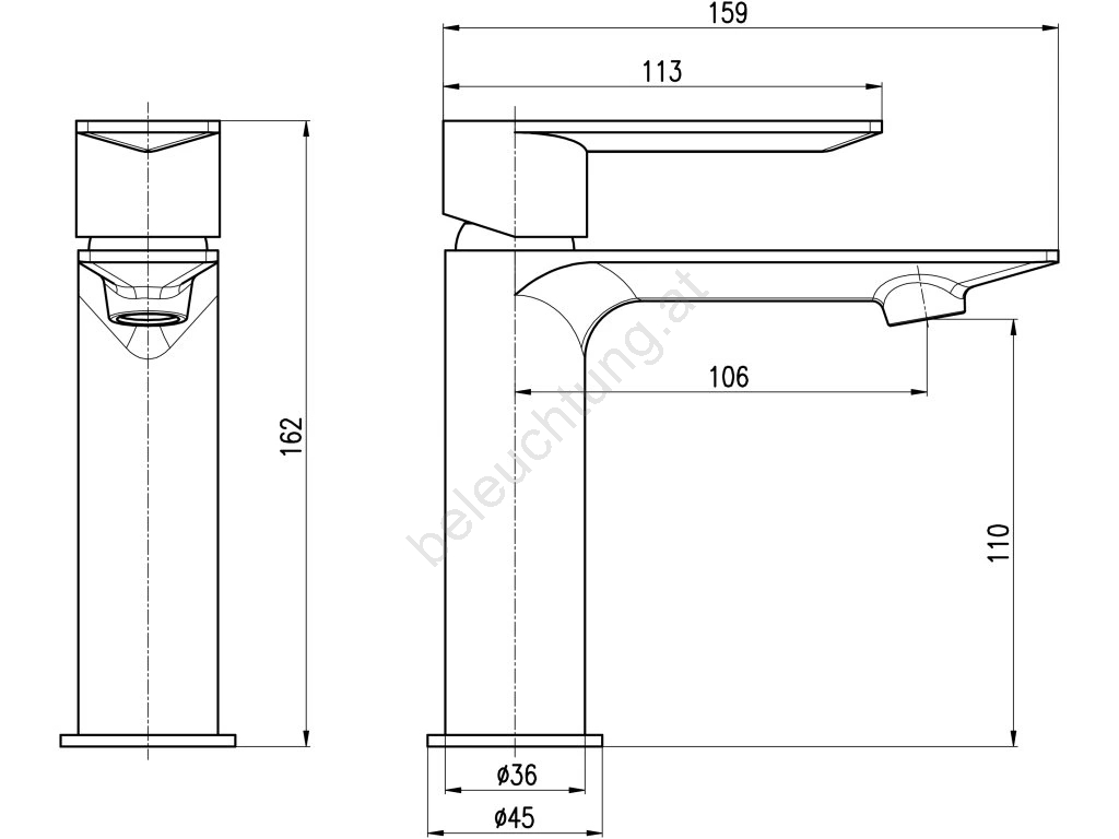 • Stand-Waschtischarmatur ohne Ablaufgarnitur.