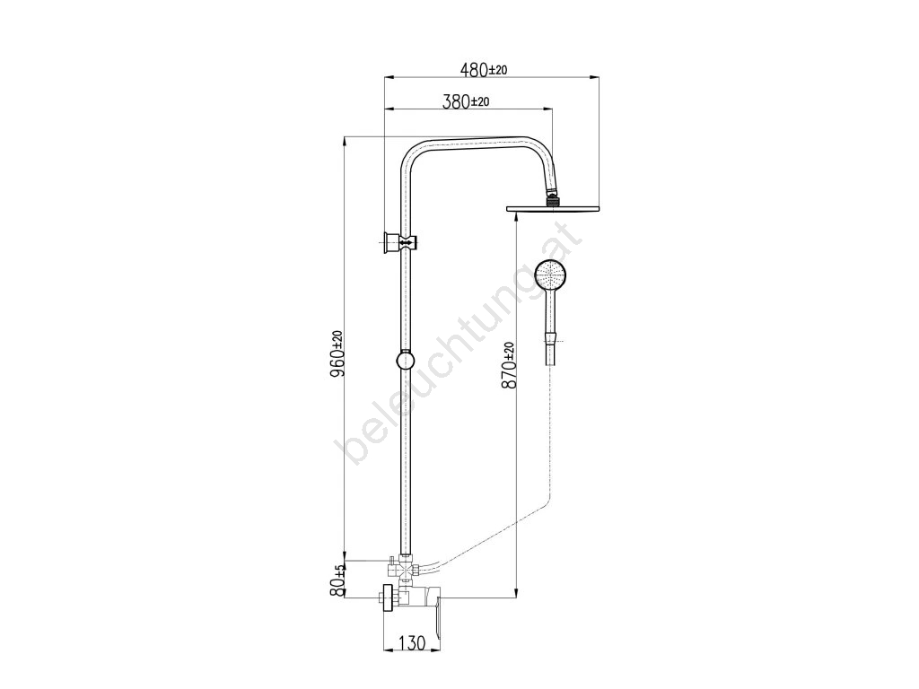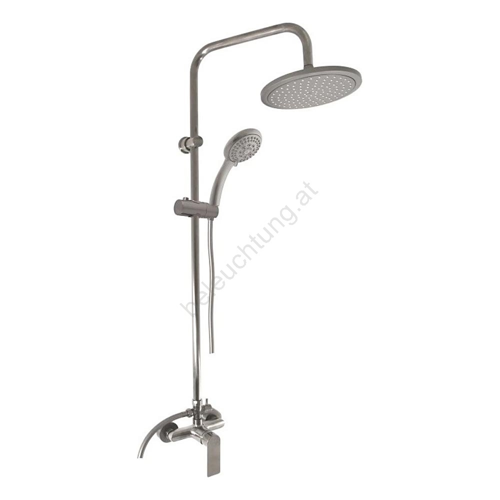 • Set enthält: Duscharmatur, Kunststoff-Handbrause mit 5 Funktionen (Ø 100 mm), Kunststoff-Kopfbrause (Ø 200 mm), Metall-Brauseschlauch (1500 mm), Duschstange.
