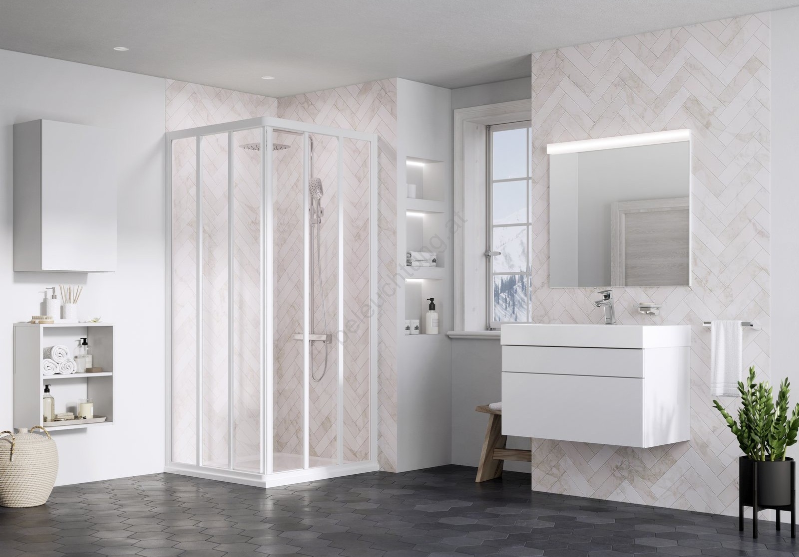 • Das Schiebesystem gewährleistet einen sanften, geräuscharmen Türlauf und spart Platz im Badezimmer.