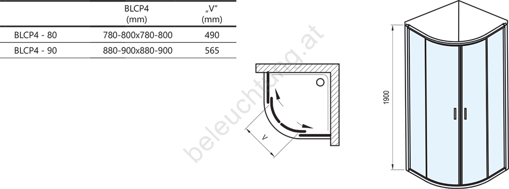 • Mit einem Radius von 550 mm und einer Höhe von 190 cm bietet sie ausreichend Platz für komfortables Duschen, ohne massiv zu wirken.