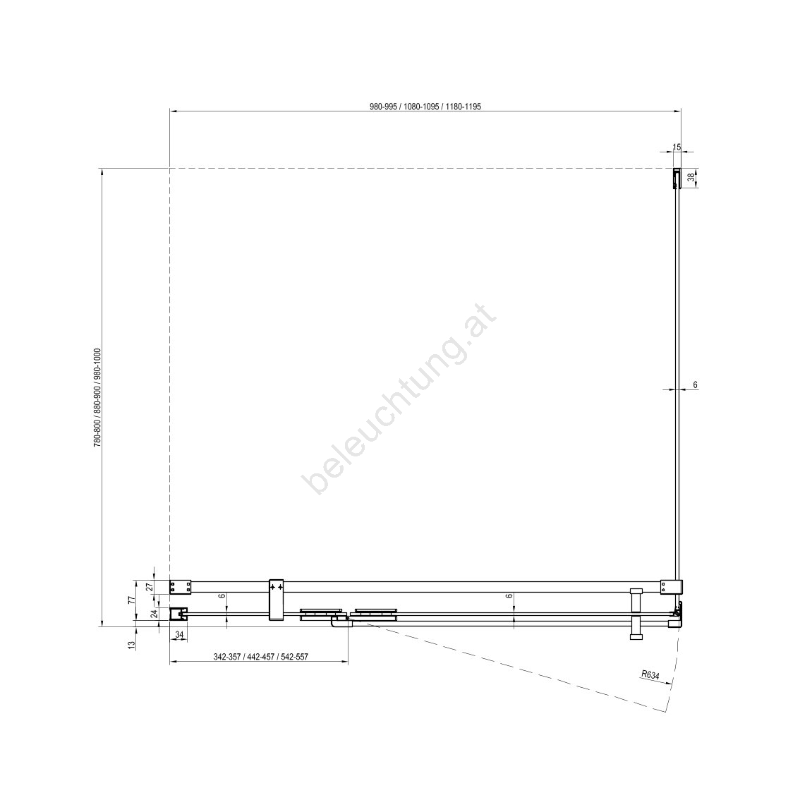 • Bei Nischenmontage können die Türen mit dem Verstellprofil CONPS um bis zu 25 mm erweitert werden (nicht im Set enthalten).