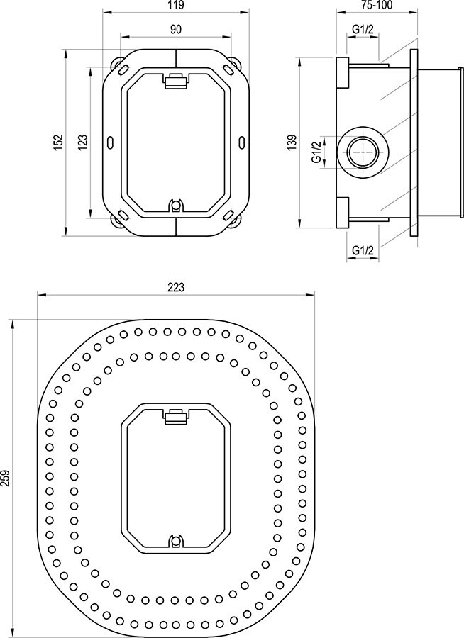 Ravak X070052 - Basiskörper für Unterputzarmaturen R-BOX 15,2x11,9 cm