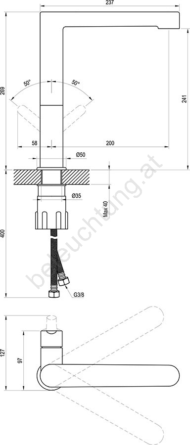 • Die Armatur wird ohne Ablauf geliefert und enthält flexible Anschlussleitungen mit einer Länge von 450 mm und DN8-Durchmesser.