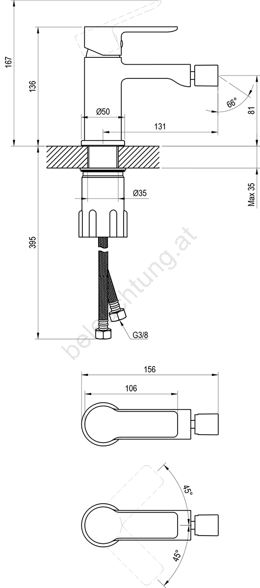 • Anschlussschläuche: flexibel, 450 mm, Durchmesser G3/8.