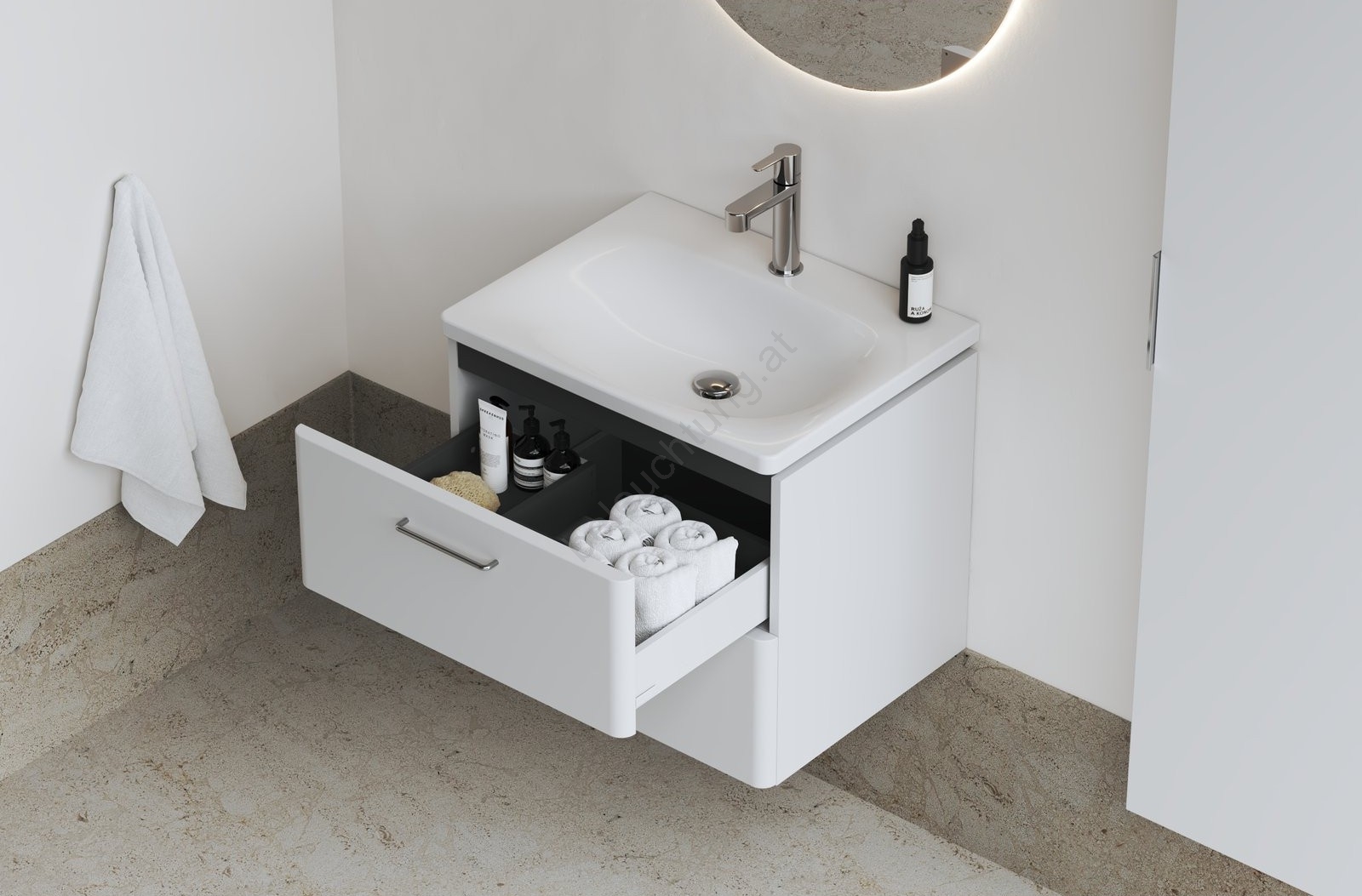 • Das Möbelwaschbecken Balance mit den Maßen 60 x 46,5 x 3 cm ist zum Einlassen in einen hängenden Unterschrank bestimmt.