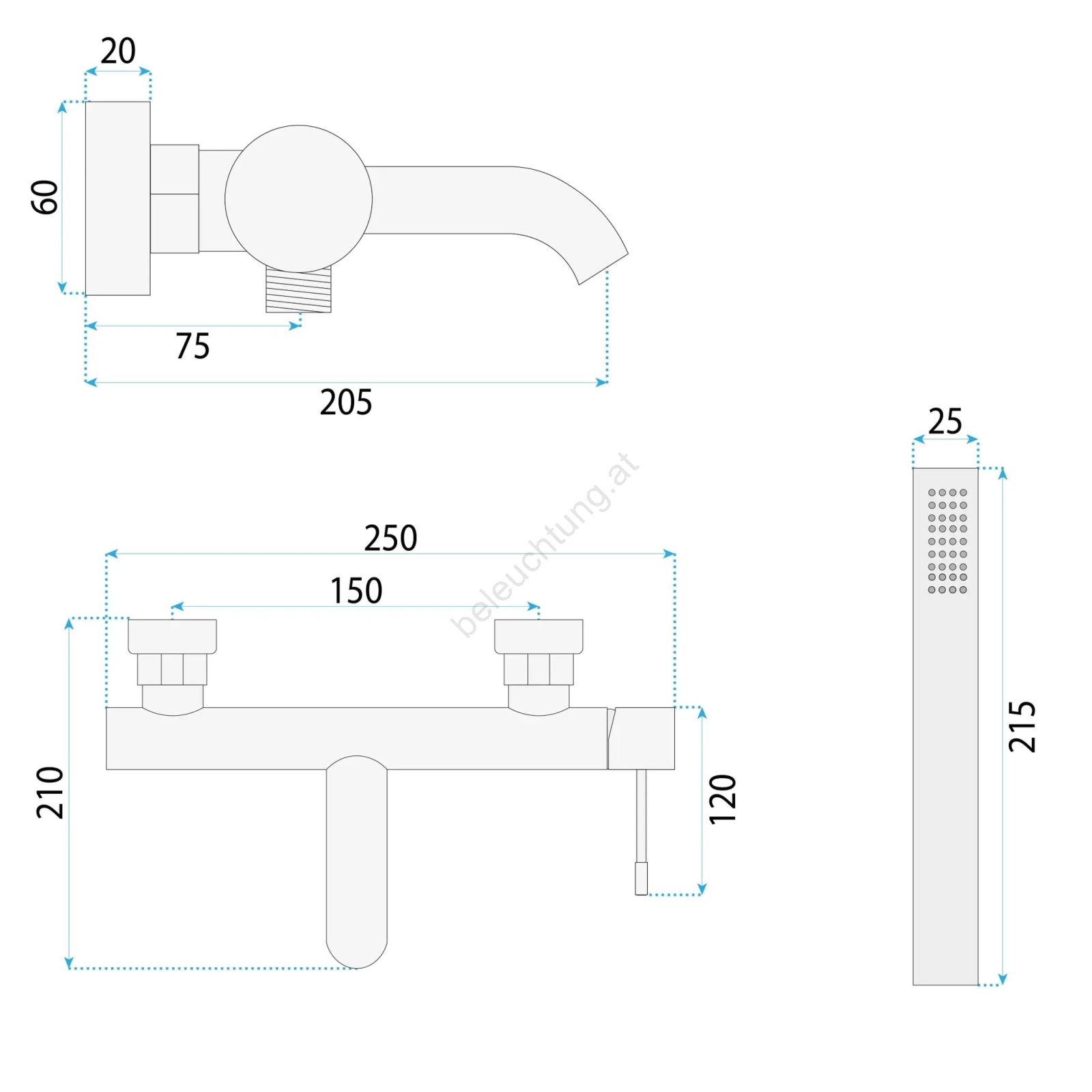 • Lieferumfang: Badewannenarmatur, Handbrause, Duschschlauch (190 mm), Wandhalter für Handbrause.