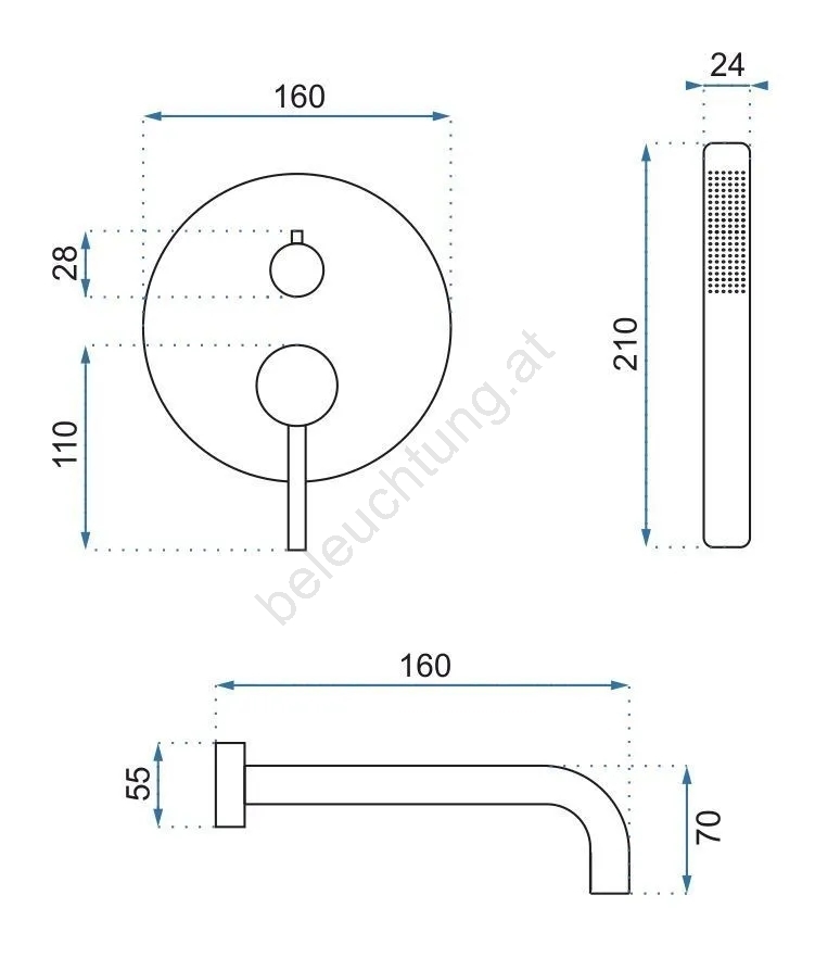 REA-B7503 - Wannen-Set LUNGO mit Unterputz-Armatur, gebürstetes Gold