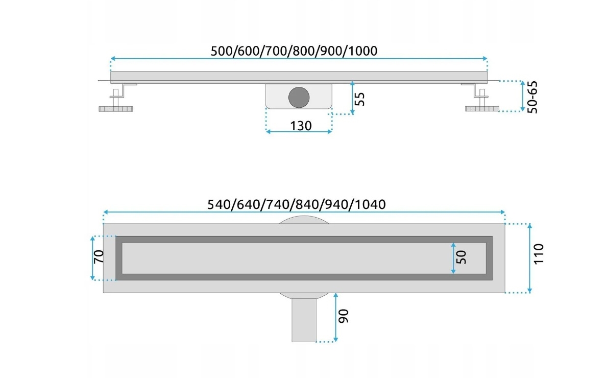 • Dank höhenverstellbarer Füße (50–65 mm) lässt sich der Ablauf leicht an unterschiedliche Bodenverhältnisse anpassen.