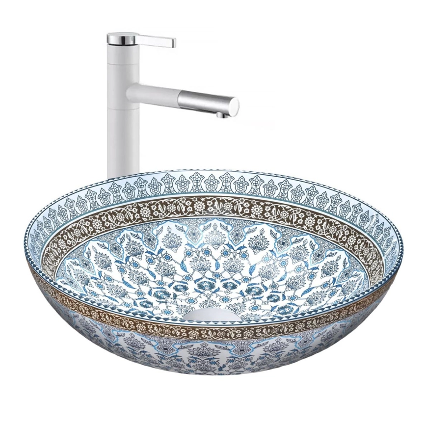 REA-U0267 - Aufsatzwaschbecken ARTE Ø 40 cm, Keramik mit Ornamentmuster