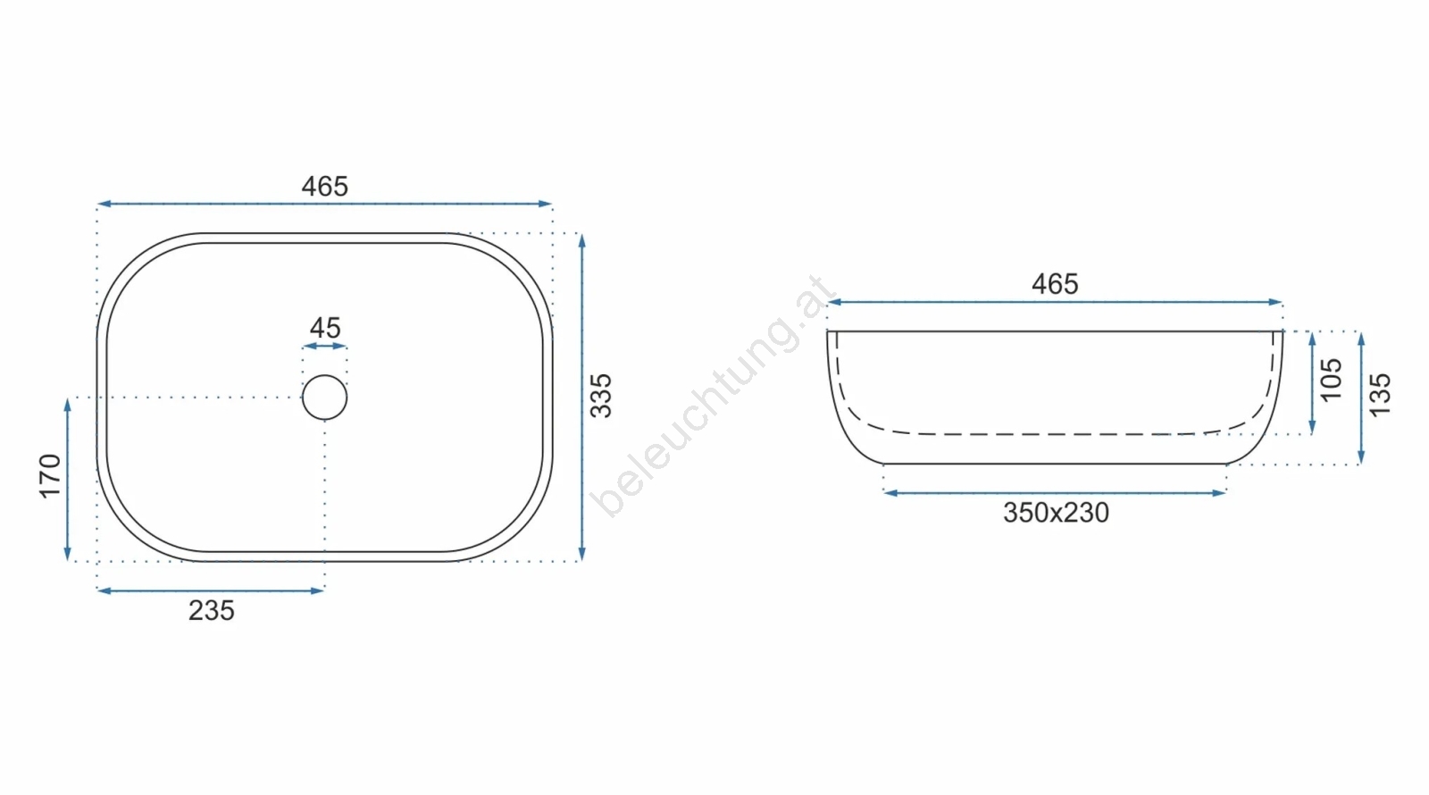 • REA-U6521 - Aufsatzwaschbecken BELINDA 33,5x46,5 cm Keramik/hochglanzweiß