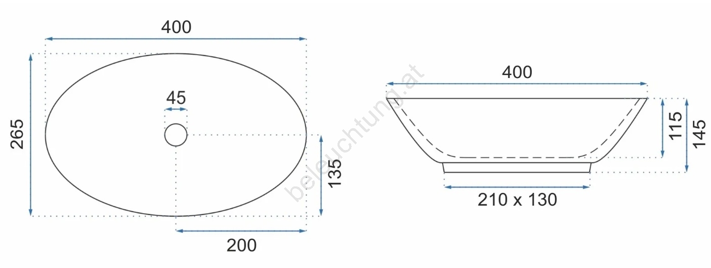 • Modernes und elegantes Waschbecken ohne Überlauf.