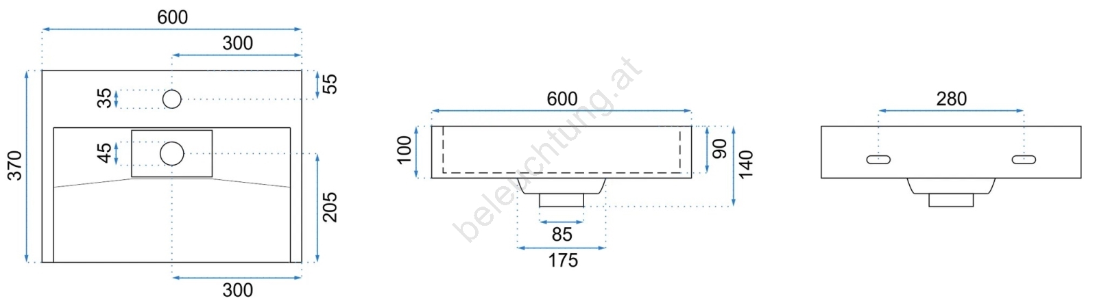• Waschbeckenarmatur und Ablauf sind nicht im Lieferumfang enthalten.