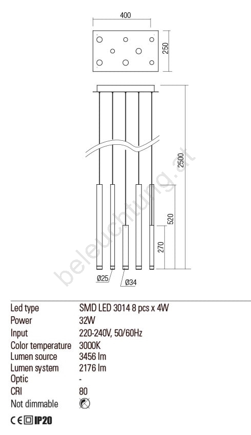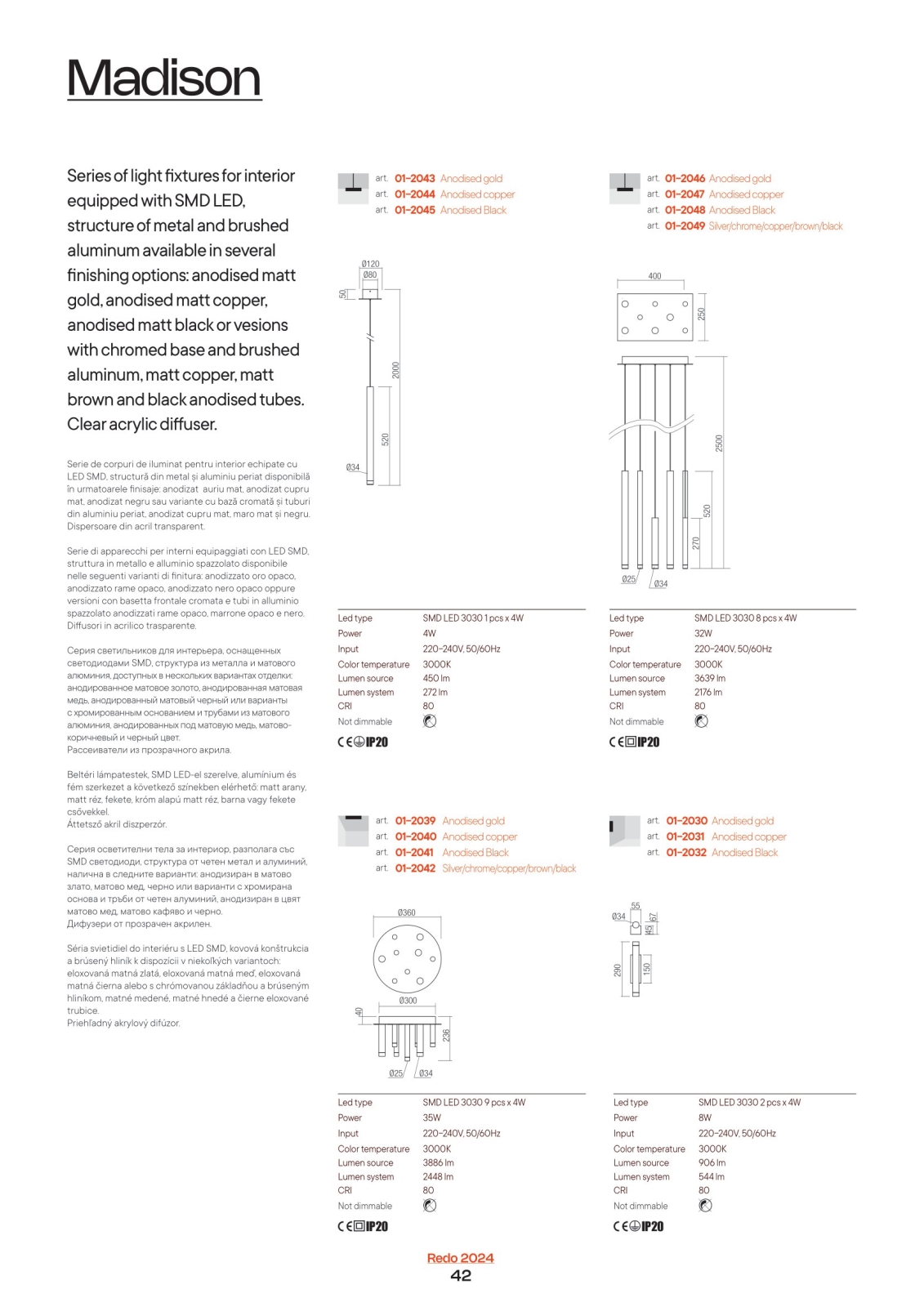 • Redo 01-2049 - LED-Hängeleuchte an Schnur MADISON 8xLED/4W/230V glänzendes Chrom/schwarz/kupfern