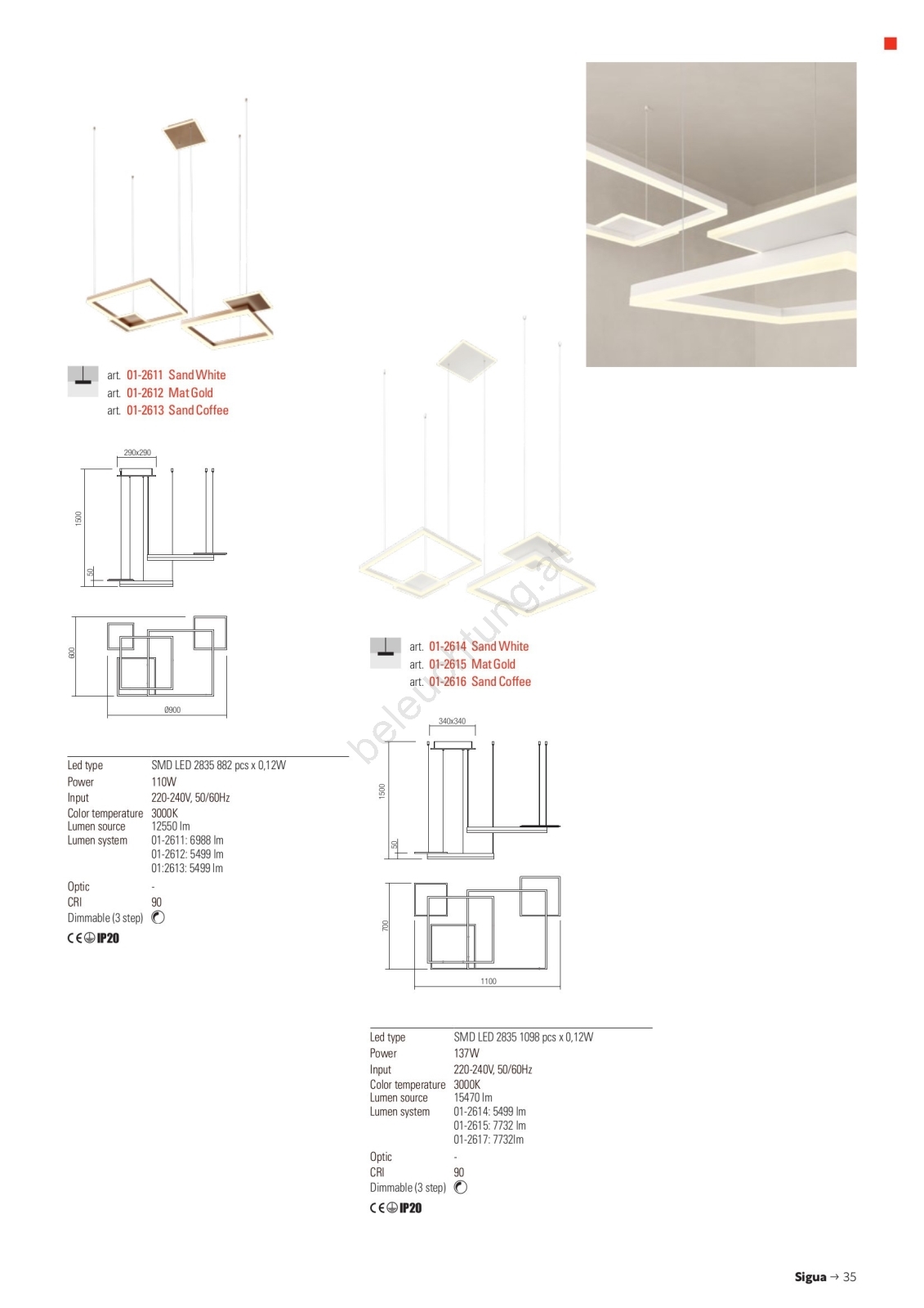 • Redo 01-2614 - LED-dimmbare Pendelleuchte an Seil SIGUA LED/137W/230V CRI 90 weiß