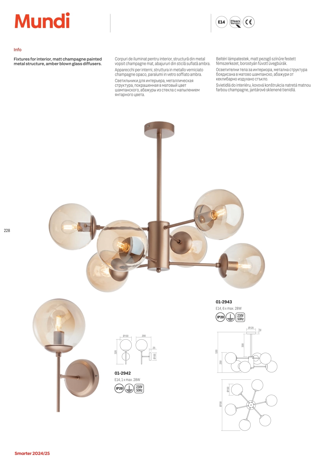 Redo 01-2942 - Wandleuchte MUNDI 1xE14/28W/230V Kupfer/Rauchglas zeichnet sich durch schönes und funktionales Design aus. Eine Glühbirne mit E14 Sockel ist für die Leuchte geeignet. Hier, können Sie andere Glühlampen zu vorteilhaften Preisen kaufen. Sie erhalten eine attraktive Ergänzung für Ihr Zuhause.