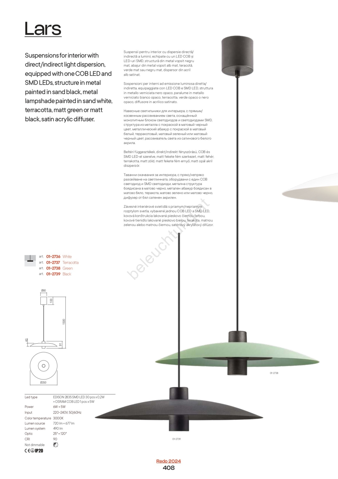 • Redo 01-3018 - LED-Pendelleuchte LARS an Stahlseil LED/14W/230V + LED/10W Ø 60 cm CRI 90 weiß