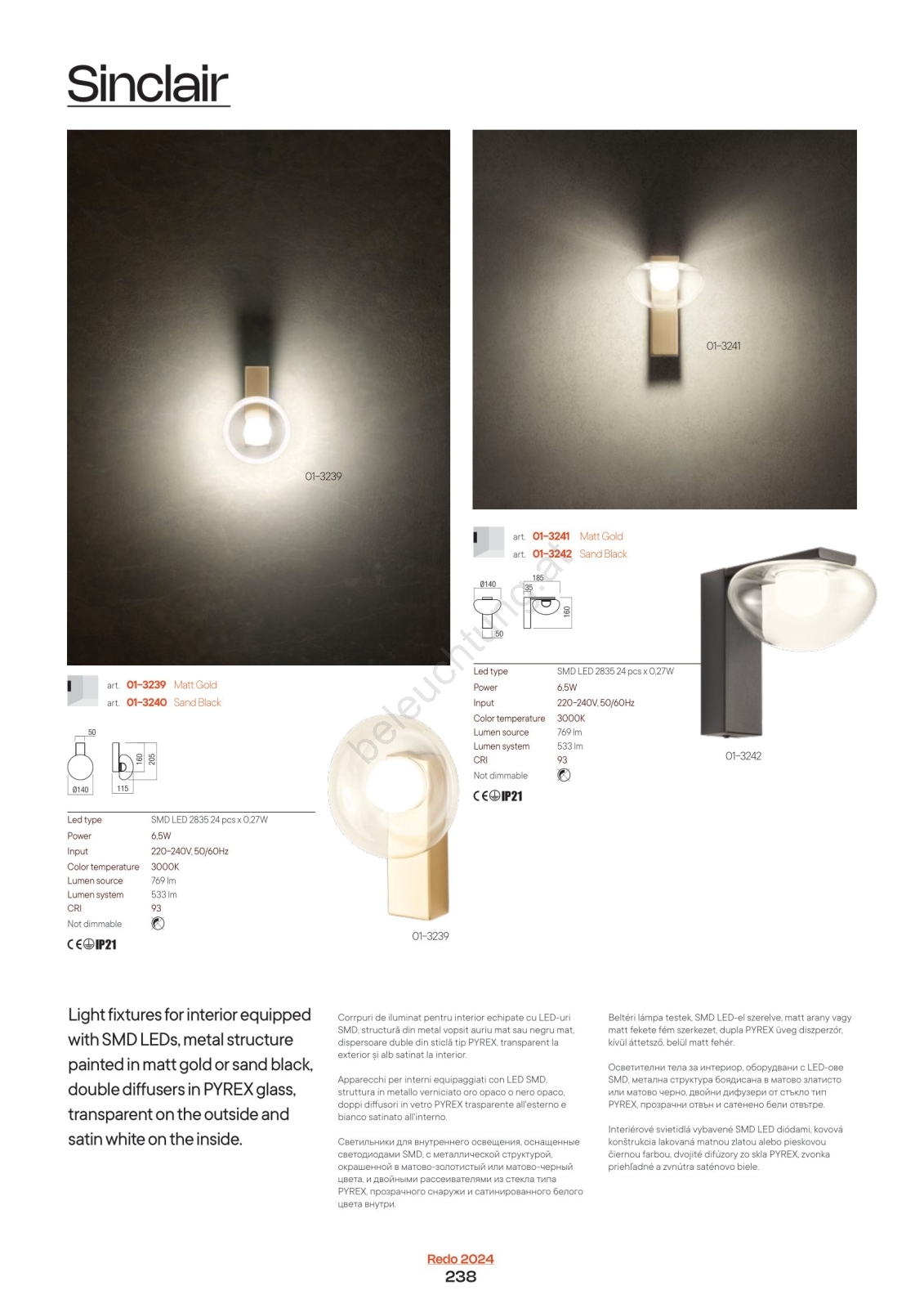 • Redo 01-3239 - LED Wandleuchte SINCLAIR LED/6,5W/230V CRI 93 IP21 gold
