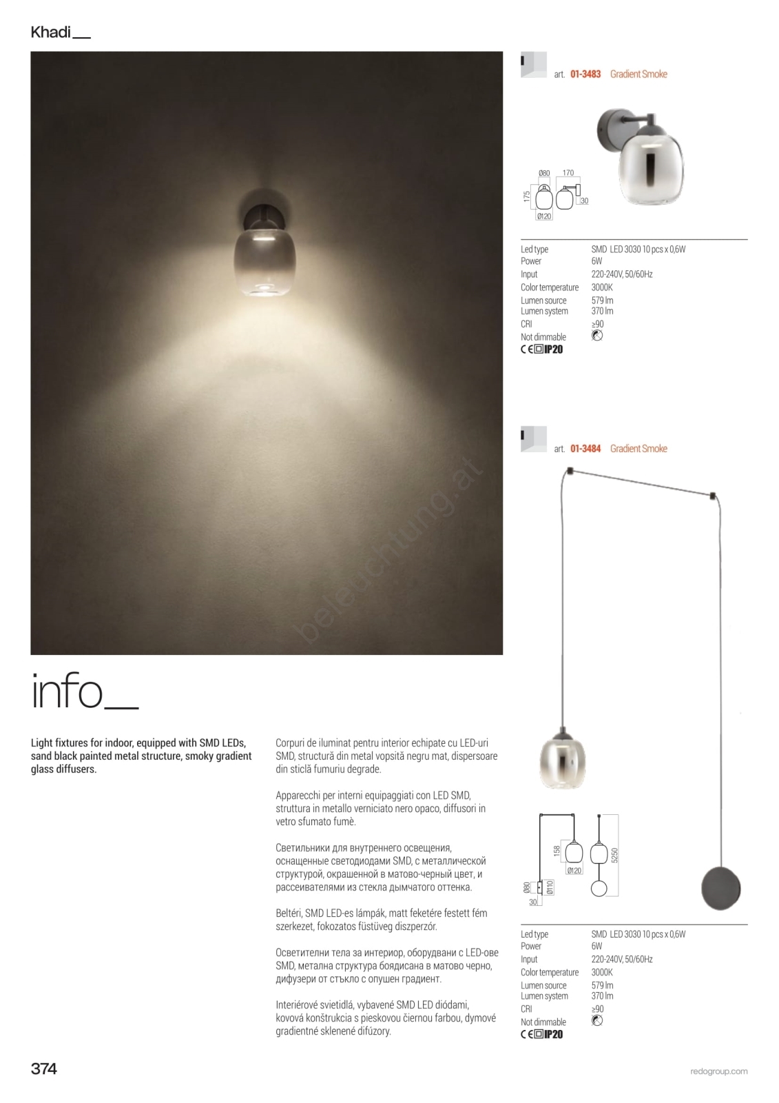 Redo 01-3487 - dimmbare LED-Pendelleuchte an Kabel KHADI 5xLED/5,2W/230V CRI 90 Spider schwarz/rauchfarben