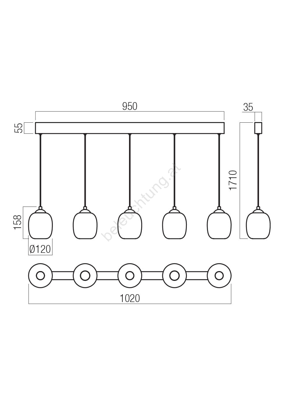 Redo 01-3490 - LED dimmbare Hängeleuchte an Drahtseil KHADI 5xLED/5,2W/230V CRI 90 schwarz/rauchgrau