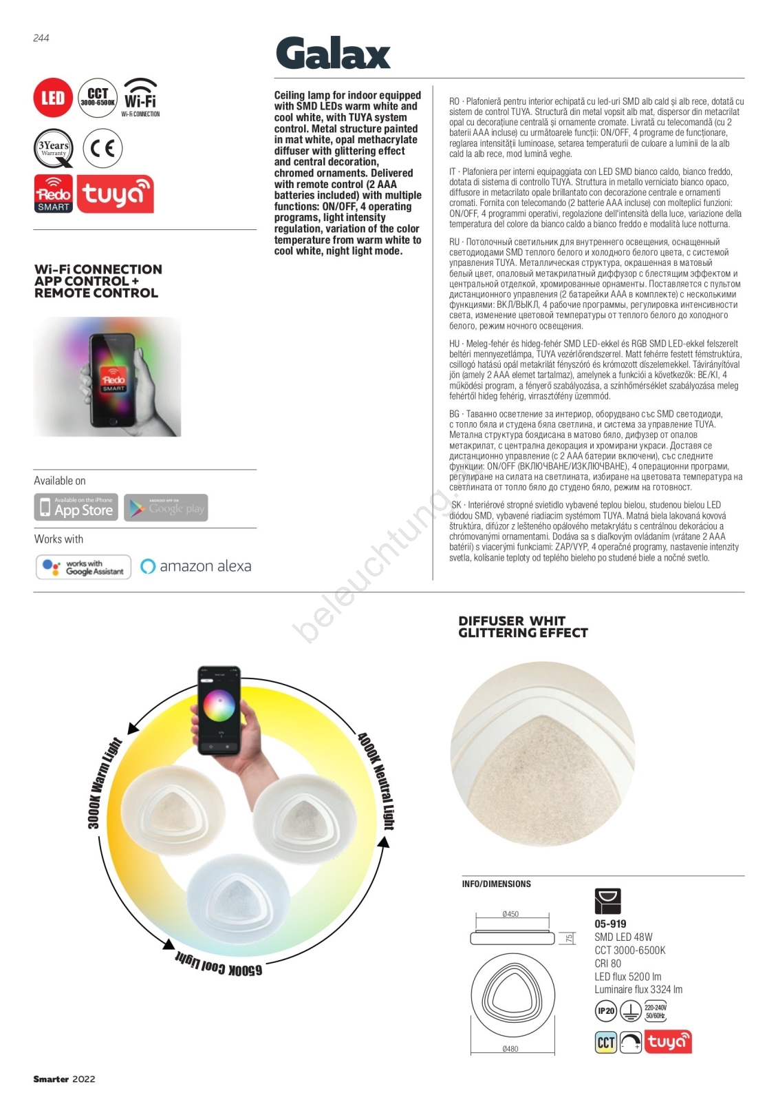 Redo 05-919 - LED-dimmbare Deckenleuchte GALAX LED/48W/230V 3000-6500K Wi-Fi Tuya Ø 48 cm weiß + Fernbedienung