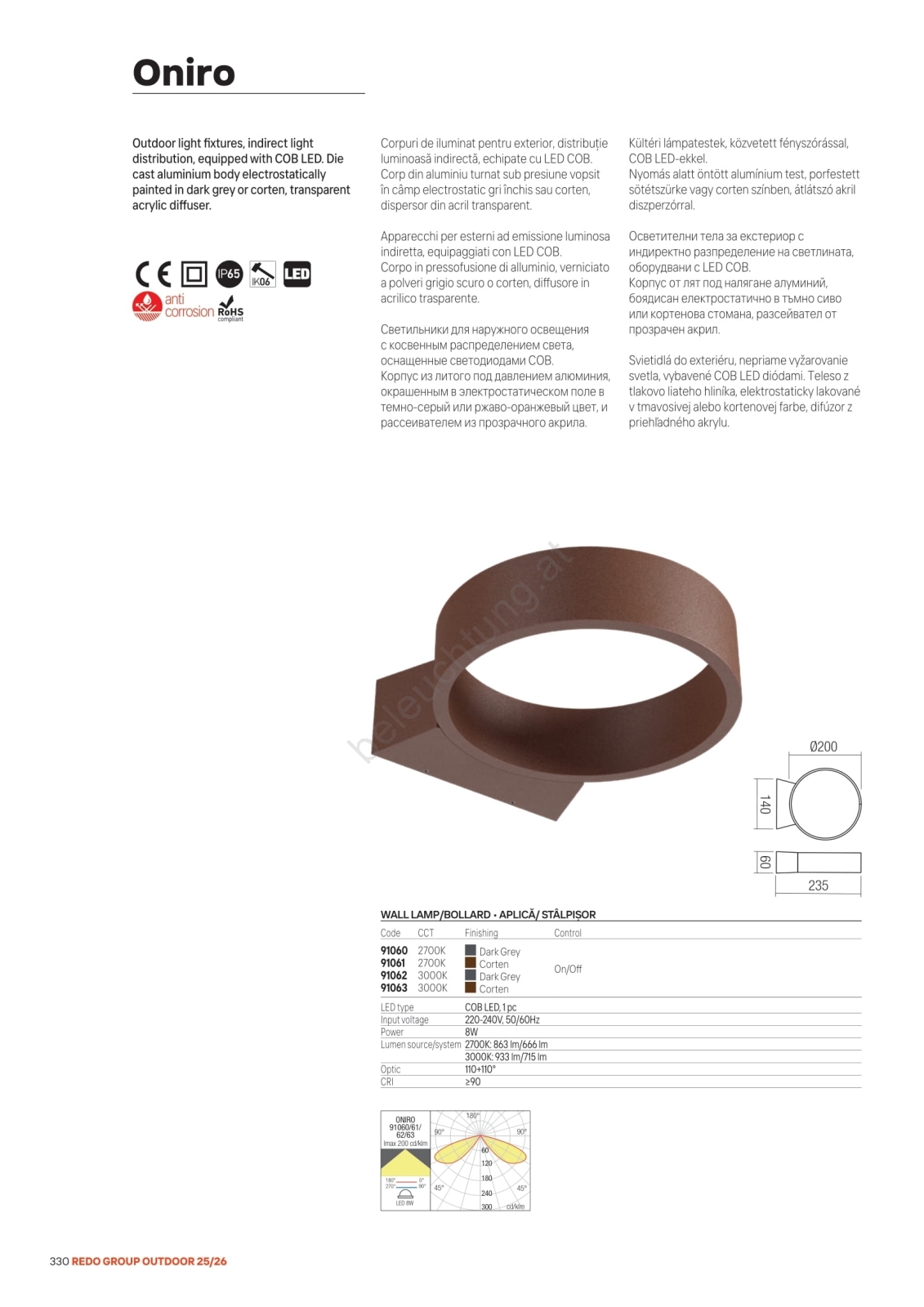 • Redo 91062 - LED Außenwandleuchte ONIRO LED/8W/230V 3000K CRI 90 IP65 Anthrazit